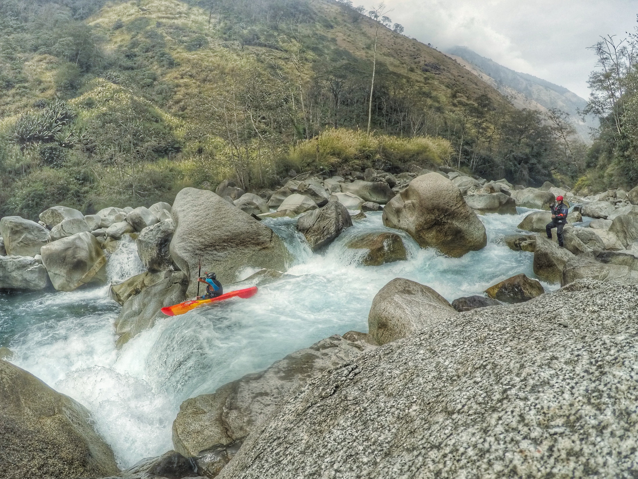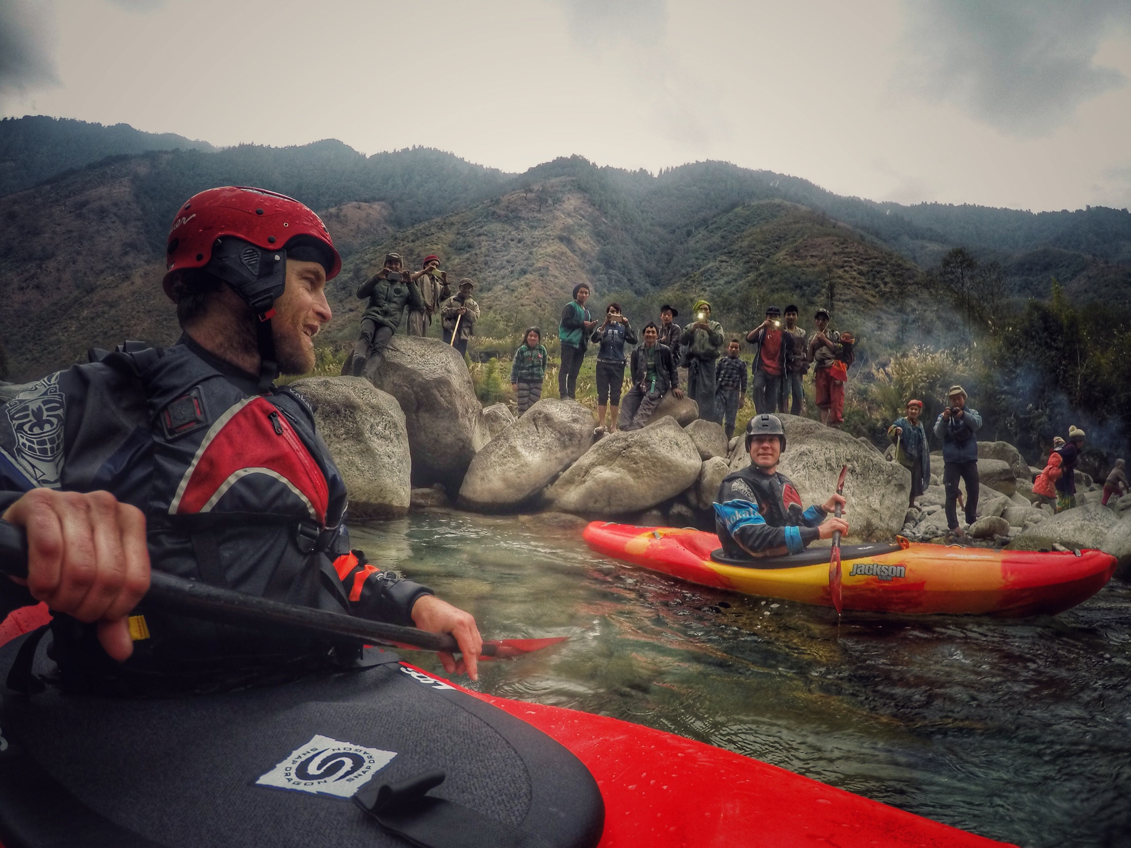 4 First Descents in 2016 Part 1: Hotel Arrest by Ben Stookesberry | Jan 7, 2017 | Featured Post, Internationalisation, jacksonkayak.com, JK Team Posts, Media, Trip Reports, United States, Whitewater, Wrap Ups | 0 comments I have dedicated the last 18.5 years of my life to the pursuit of exploratory kayaking. I say the pursuit of exploratory kayaking because the act of exploratory kayaking represents only a small fraction of that time. But it’s that small fraction that seems to fill the rest of the days months and years with meaning. These are the fleeting moments when an extreme sense of place is coupled with a river that moves me inexorably forward, without truly knowing what lies ahead. In this epic adventure of river exploration, as in life, nothing is guaranteed, which is exactly how 2016 began: without guarantee, at the end of a long dirt road, and at the start of a long winding trail into Northern Myanmar. Jan – February The ill-fated Source to sea Attempt of the Irrawady It’s heartening to know that there are still roadless places on our planet where long-format expedition becomes the preferred means of travel. Take Northern Labrador for example, where in 2014 Pedro Oliva, Erik Boomer, Benny Marr, Chris Korbulic, and I paddled and hiked nearly 600 miles over 6 weeks with only a few resupplies. With that expedition in mind, I latched onto an idea hatched by Chris Korbulic to hike into the most remote corner of the Himalayas with a kayak in order to make a first descent in the headwaters region of the mighty Irrawaddy river in Myanmar. When we decided that we would follow the river until it’s logical conclusion 1200 miles downstream in the Adaman Sea, we took on an expedition like neither of us had tried before. Initially Chris and I were only vaguely aware of the 4 expeditions that the late, great David Allardice had led into the region between 1998 and 2009. Allardice knew his stuff like no other river operator in Himalayas which is probably why he nailed the timing of his Irrawaddy headwaters first descent and subsequent commercial expeditions. In 2011 a decade long cease-fire in the longest ongoing civil war on earth ended when a government plan to dam the Irrawaddy went ahead without the consent of the Northern Rebels. The Rebels protested, the government shot back, and the long standing disintegrated into active fighting that continues as off this writing. Chris and I failed to take this into full consideration, but quickly found out after arrival in Myanmar that there was no way we were going to receive permission to paddle through these active conflicts. We set off on our expedition anyway, willfully ignorant, with a plan to beg for forgiveness in lieu asking for permission. Long story made extremely short, we hiked 105 miles with our kayaks to paddle a disjointed 135 miles of river that ultimately led to being detained by the secret police and put under hotel Arrest. It ended up not being that big of a deal, but at the time it seemed like it could have gone either way. If you haven’t heard the full story yet, I can’t do it more justice than was done by Jen Autchel and Duck Tape then Beer’s “Dirt Bag Diaries” podcast available here. I also wrote a long format piece just after the trip for the Eddie Bauer Born out there blog linked here. Part 2 Part 3 Part 4 Submit a Comment Cancel replyYour email address will not be published. Required fields are marked *Comment * Name * Email * Website Save my name, email, and website in this browser for the next time I comment. Δ